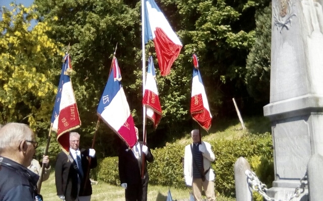 Le maire, Eric Boisnard, était accompagné du Président et du vice-Président des anciens combattants, Pascal Cabariste et Roger Mariolle, ainsi que de Claude Lemarinel qui inaugurait, en ce jour particulier, sa nouvelle mission de nouveau porte drapeau de Courtonne la Meurdrac.